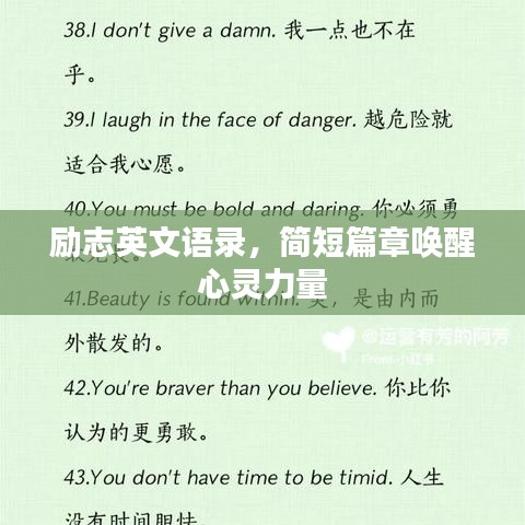 這些勵志簡短的英文語錄,無論是放在案頭作為每日的提醒,還是在困難時刻給予自己鼓勵,都能為我們提供前進的動力,在人生的道路上,讓我們銘記這些充滿力量的語句,不斷前行,不斷超越自我,實現(xiàn)自己的夢想,無論面臨何種挑戰(zhàn),都要相信自己,勇敢地去追求那份屬于自己的榮耀與成功。