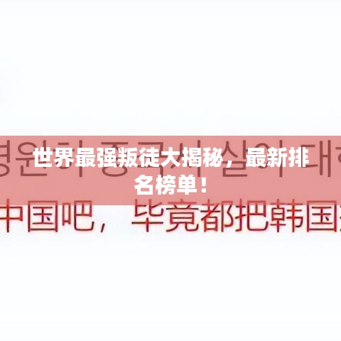 世界最強叛徒大揭秘,最新排名榜單!